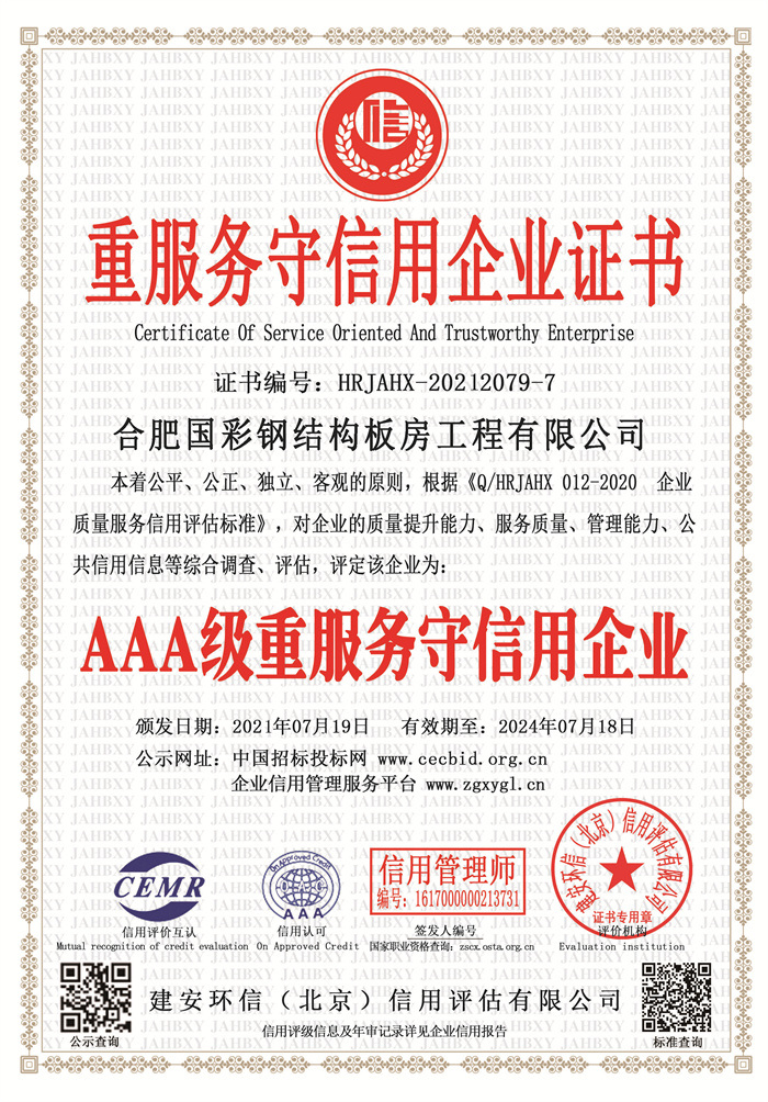 重服務守信用企業證書