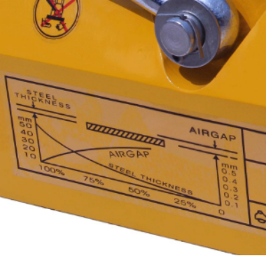 這個曲線圖很好的說明了為什么鋼板過薄不能起吊以及空隙過大重物容易墜落的問題,所以使用永磁起重器使一定要認真觀看產品說明,了解它的最低吸取厚度以及承載能力,使用時最好使重物與設備間沒有空隙,這樣才能發揮設備最大的磁力。